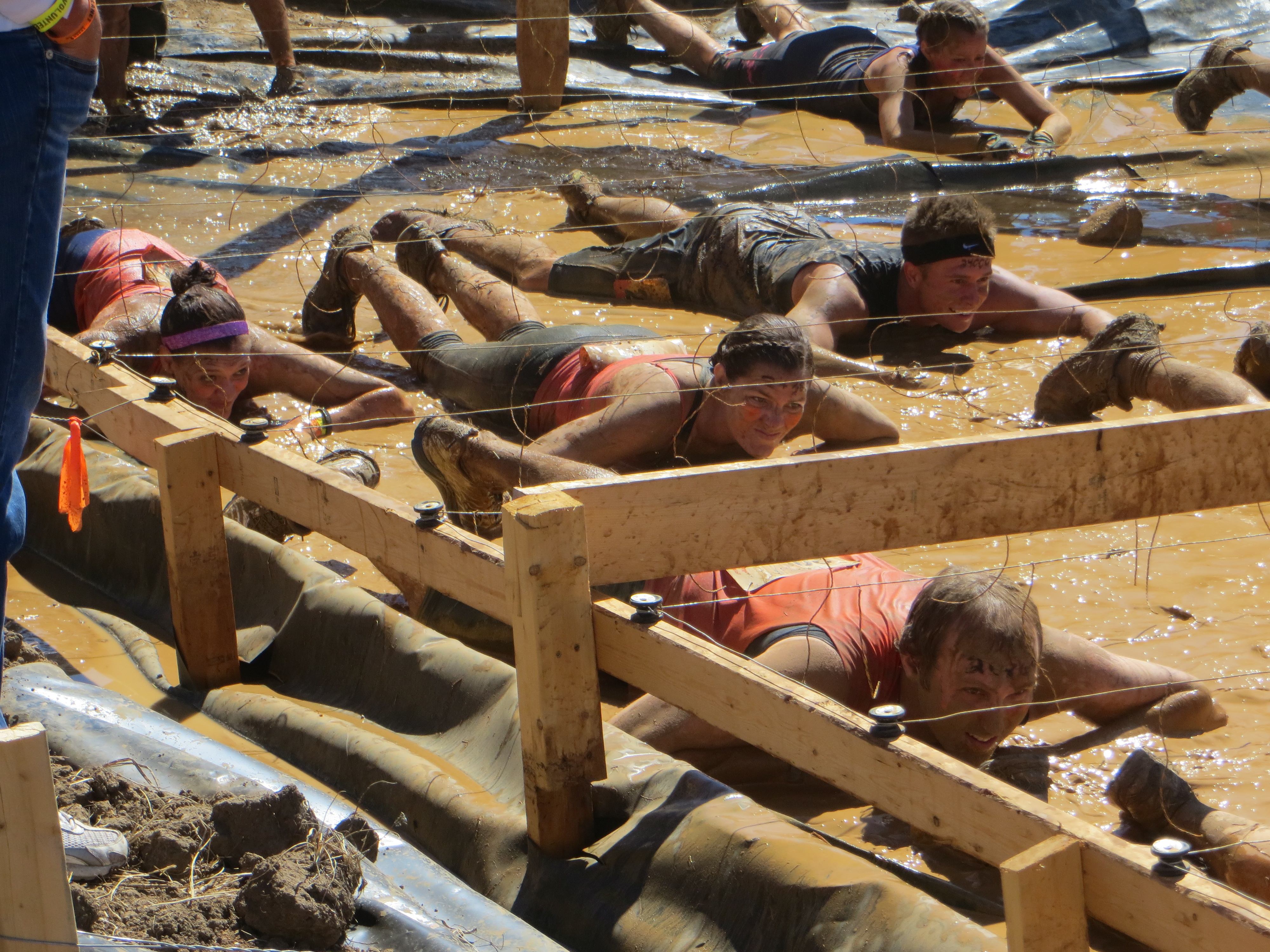 We were the lucky ones who DIDN’T have a fire hose on us during this obstacle. Apparently later in the day they added water, since the mud was drying out, while Mudders were in there. Bullet dodged.