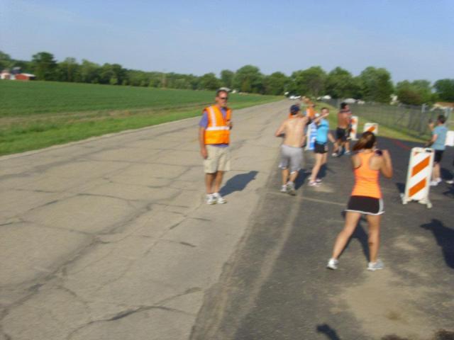 | Runner one is in the orange tank top. |